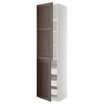 Высокий шкаф + полки, 3 ящика, 2 дверцы МЕТОД / ФОРВАРА, белый, Эдсерум коричневый