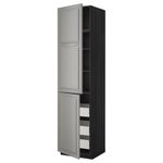 Высокий шкаф + полки, 3 ящика, 2 дверцы МЕТОД / ФОРВАРА, черный, Будбин серый