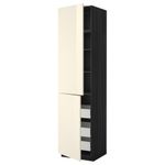 Высокий шкаф + полки, 3 ящика, 2 дверцы МЕТОД / ФОРВАРА, черный, Рингульт кремовый