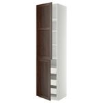 Высокий шкаф + полки, 3 ящика, 2 дверцы МЕТОД / МАКСИМЕРА, белый, Эдсерум коричневый