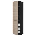 Высокий шкаф + полки, 3 ящика, 2 дверцы МЕТОД / МАКСИМЕРА, черный, Брокхульт светло-серый