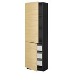Высокий шкаф + полки, 3 ящика, 2 дверцы МЕТОД / МАКСИМЕРА, черный, Тингсрид береза