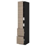 Высокий шкаф + полки, 4 ящика, 2 дверцы МЕТОД / ФОРВАРА, черный, Брокхульт светло-серый