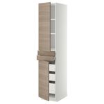 Высокий шкаф + полки, 5 ящиков, 2 дверцы, 2 фронтальных МЕТОД / МАКСИМЕРА, белый, Брокхульт светло-серый