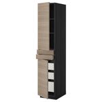 Высокий шкаф + полки, 5 ящиков, 2 дверцы, 2 фронтальных МЕТОД / МАКСИМЕРА, черный, Брокхульт светло-серый
