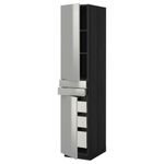 Высокий шкаф + полки, 5 ящиков, 2 дверцы, 2 фронтальных МЕТОД / МАКСИМЕРА, черный, Гревста нержавеющ сталь