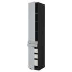 Высокий шкаф + полки, 5 ящиков, 2 дверцы, 2 фронтальных МЕТОД / МАКСИМЕРА, черный, Веддинге серый