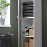 Этот высокий шкаф с 4 полками обеспечит хранение продуктов, полотенец и чистящих средств. При этом он займет совсем немного места на полу — идеальное решение для небольших помещений.