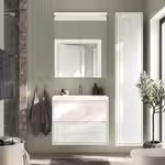 Глянцевая отделка белого цвета придает мебели изящный современный вид, который подчеркивается интегрированными ручками.