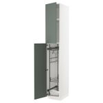Высокий шкаф с отделением для аксессуаров для/уборки, белый/Бодарп серо-зеленый 40x60x240 см IKEA METOD МЕТОД