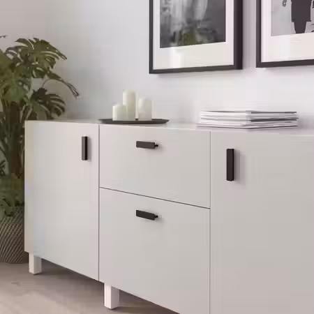 Тонкая изящная рамка фасадов ASPUDDEN подчёркивает минималистичный характер кухни — выглядит сдержанно, но с акцентом, и не выходит из моды.