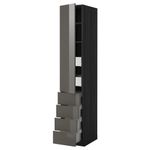 Высокий шкаф с полками/6 ящик, дверцами, 4 фронтальные панели МЕТОД / ФОРВАРА, черный, Рингульт серый