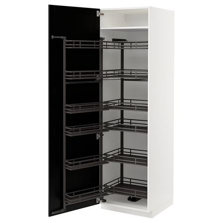 METOD 494.720.22 Высокий шкаф с выдвижным модулем, белый/Sinarp коричневый 60x60x200 см
