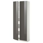Высокий шкаф с ящиками, 2 дверцы МЕТОД / МАКСИМЕРА, белый, Рингульт серый (80x37x200 см)