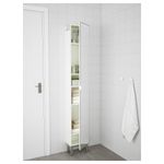Узкий шкаф – идеальное решение для небольших помещений. Зеркало снабжено защитной пленкой с обратной стороны. Это снижает опасность получения травм, если стекло разобьется. Ручка и петли прилагаются. 1 несъемная и 4 съемные полки прилагаются.