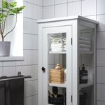 В этом шкафу со стеклянной дверцей можно выставить любимые флаконы и корзины, а внизу он оснащен полкой для мягких полотенец. Высокие и изящные размеры позволяют экономнее использовать ценное пространство в небольших ванных комнатах.