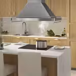 Вытяжка из нержавеющей стали с регулируемой светодиодной подсветкой станет эффектным акцентом над кухонным островком.