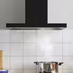 Что бы ни происходило на вашей кухне, вы точно оцените эту чёрную вытяжку с современным дизайном, лаконичными прямыми линиями и светодиодной подсветкой.
