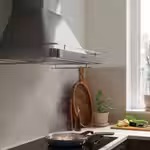 Встроенная полка для специй по краю вытяжки позволяет аккуратно расставить специи и освободить рабочее пространство на столешнице.
