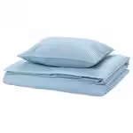 Комплект постельного белья WEYMOUTHTALL с бело-голубым узором в клетку и приятной жатой фактурой — лучший выбор для тёплой погоды, так как мягкая ткань из хлопка и вискозы с лёгким блеском хорошо пропускает воздух.