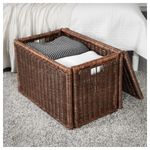 Корзины ручного плетения, поэтому размеры могут немного различаться. Ширина: 71 см. Глубина: 45 см. Высота: 48 см. Основные части: Очищенный ротанг. Каркас: Ротанг. 100 % возобновляемый материал.