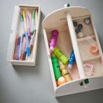 Хорошо, когда у каждого аксессуара для творчества есть свое место. В этом ящике можно хранить все необходимое для рисования и поделок, здесь есть даже отделение для бумаги формата А4.