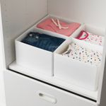 Внутри органайзер для носков, нижнего белья и других мелочей. Идеально подходит для ящиков СМОСТАД.Хорошо, когда у каждой вещи есть место и не нужно тратить время на поиски. В этой коробке удобно хранить и детские вещи, и игрушки.