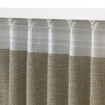Эти гардины из ткани с нитями желтого и темно-синего цветов, которые хорошо видны в декоративной бахроме по коротким сторонам.