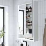 Белый зеркальный шкафчик, который помогает подготовиться к новому дню.