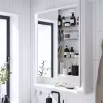 Белый зеркальный шкафчик, который помогает подготовиться к новому дню.