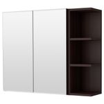 Открытый полочный модуль для хранения флаконов духов или других часто использующихся предметов. Ширина: 80 см. Глубина: 21 см. Высота: 64 см. Зеркальный шкаф с 2 дверцами: Дверь: ДСП, Пластмасса АБС, Пленка. Зеркальная часть: Стекло.