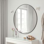 Круглое зеркало ЛИНДБЮН в лаконичной черной раме выглядит очень элегантно.