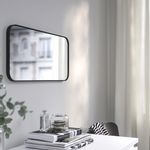 Зеркало ЛИНДБЮН с плавно скругленными углами в лаконичной черной раме выглядит очень элегантно.