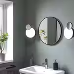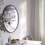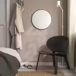 Круглое зеркало ЛИНДБЮН в лаконичной черной раме выглядит очень элегантно.