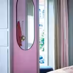 Зеркало на стене придает помещению глубину и делает интерьер более динамичным.