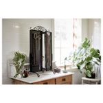 На крючки с обратной стороны боковых зеркал можно повесить украшения.Благодаря открывающимся панелям можно видеть свое отражение с разных сторон.Зеркало можно украсить прилагающимся декоративным элементом.