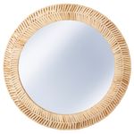 Для любителей ощущения природы в доме — декоративное зеркало в раме из плетеного ротанга, дизайн которого вдохновлен стилем оформления интерьера Japandi.