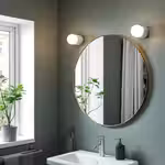 Круглое зеркало ЛИНДБЮН в лаконичной золотистой раме выглядит очень элегантно.