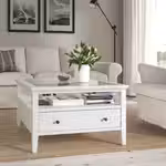 Этот журнальный столик со стеклянной столешницей и деревянным каркасом подчеркнет элегантность интерьера, а ящик позволит хранить все необходимое под рукой.