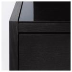 Отделка из шпона. Верхняя панель из закаленного стекла защищает поверхность от пятен. Легко передвигать благодаря колесикам. 1 съемная полка – регулируйте пространство по необходимости.