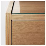 Отделка из шпона. Верхняя панель из закаленного стекла защищает поверхность от пятен. Легко передвигать благодаря колесикам. 1 съемная полка – регулируйте пространство по необходимости.