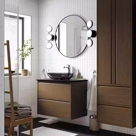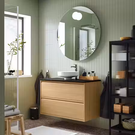 Мебель для ванной ЭНГШЁН выглядит современно и лаконично с минимумом деталей, чтобы каждый день начинался с чистоты.