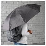 Открыть зонтик можно одной рукой, нажав на кнопку. Длина: 80 смДиаметр: 105 см. Ткань: 100% полиэстер (мин. 90 % переработанного материала)Каркас: СтальРучка: ЭВА (Этиленвинилацетат)
