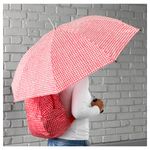 Открыть зонтик можно одной рукой, нажав на кнопку. Длина: 80 см. Диаметр: 105 см. Ткань: 100% полиэстер. Каркас: Сталь, Гальванизация. Ручка: ЭВА (Этиленвинилацетат)