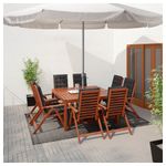 Зонт должен быть закреплен к неподвижному предмету, например к стене или дереву, а также – к земле с помощью прилагающейся веревки. Колышки для фиксации зонта к земле не прилагаются.