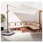 Ткань обеспечивает отличную защиту от УФ-лучей. Коэффициент защиты (UPF): 50+. Ткань с таким коэффициентом защиты блокирует 98 % ультрафиолетового излучения. Можно затенять разные зоны, так как зонт поворачивается на 360 градусов.