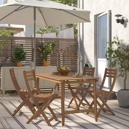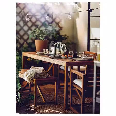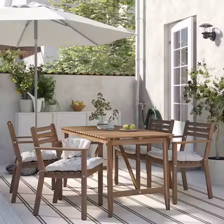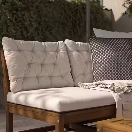 Садовая мебель АСКХОЛЬМЕН с удобными подушками изготовлена из прочной древесины акации, полученной из ответственно управляемых лесных хозяйств.
