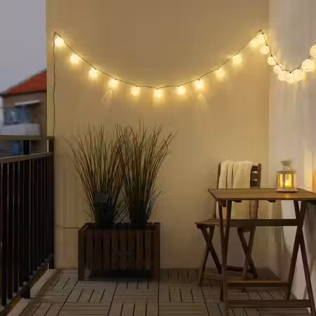 Электрические гирлянды — идеальное решение для балкона, террасы или сада.
