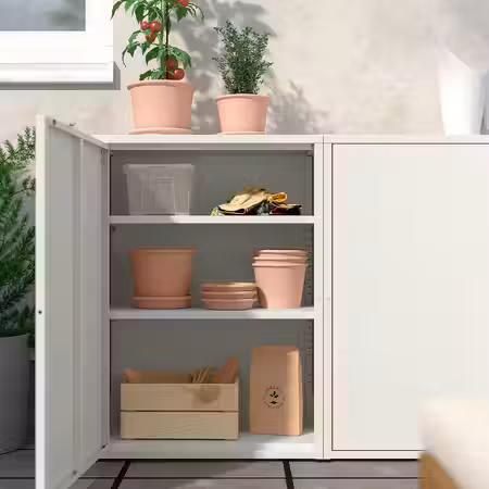 Система хранения ЙОСТЕЙН не боится повышенной влажности, так что ее смело можно ставить в ванную или прачечную или использовать на открытом воздухе, например, на балконе.